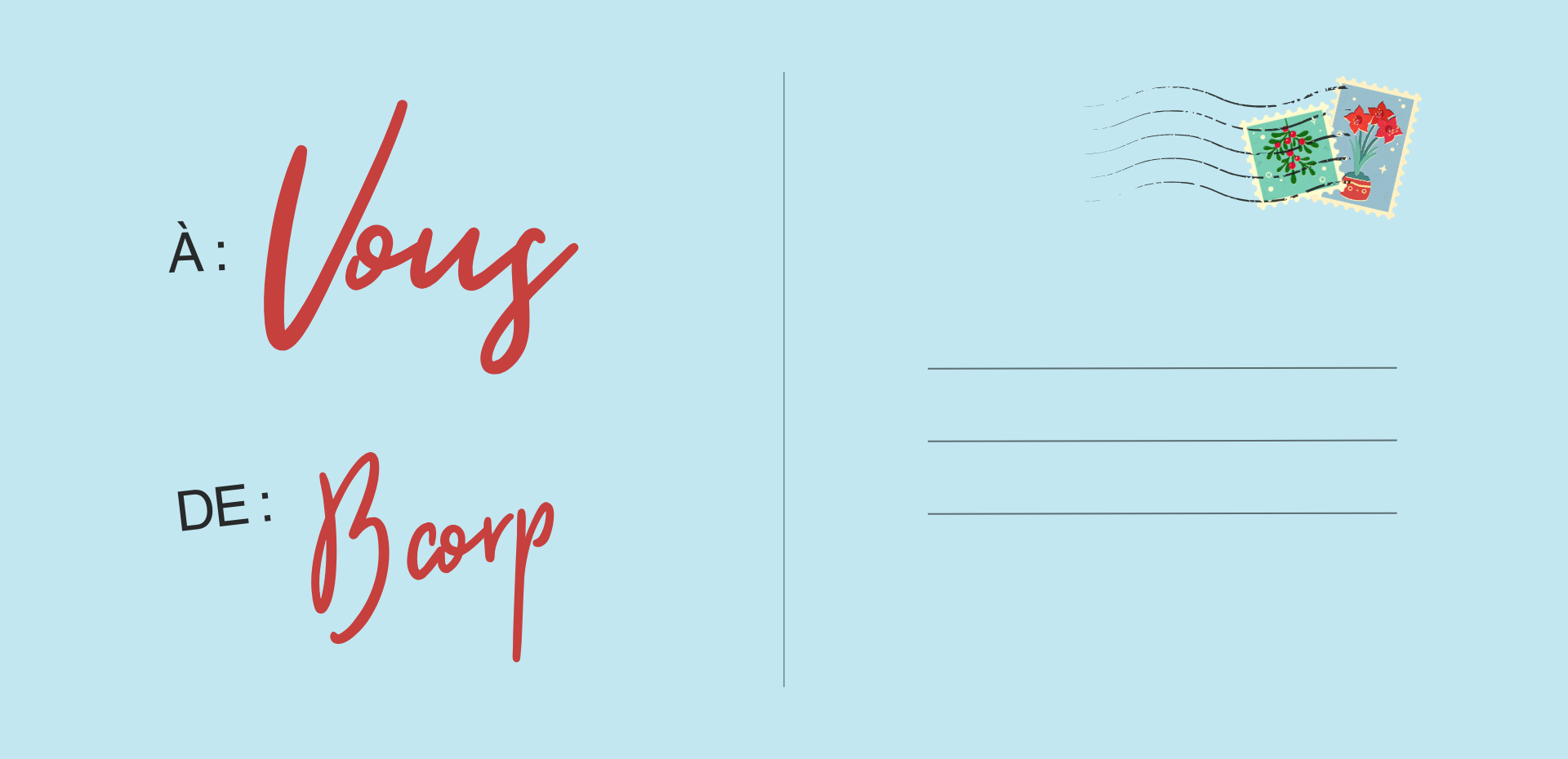 La réponse est simple : tournez-vous vers les B Corp! La certification B Corp garantit que les dollars consacrés à vos cadeaux sont, au minimum, alloués à des entreprises qui prennent en considération leur impact et qui mettent en œuvre des mesures afin d’être davantage responsables et de rendre des comptes à cet égard. Du renforcement de l’équité à la mise en place de solutions audacieuses pour le climat, ces entreprises vont au-delà des attentes pour s’assurer que votre appui financier est synonyme d’un cadeau qui permet de redonner.