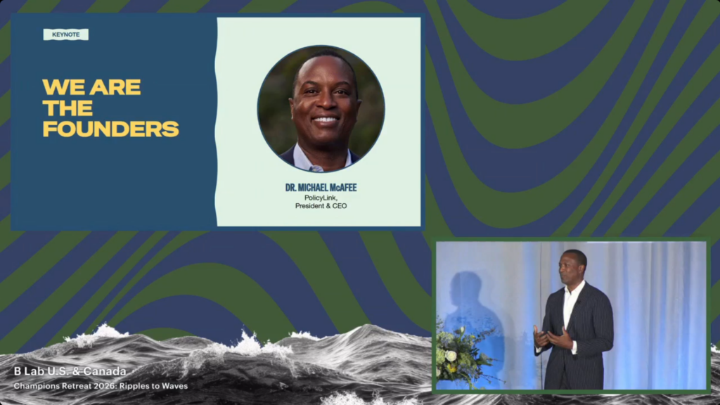 After a rapid succession of high-impact discussions, workshops, and breakout sessions, day one ended on an emotional note as B Lab U.S. & Canada Community Builder Andy Fyfe delivered a tribute reflecting on and honoring the life and impact of B Lab Co-Founder Andrew Kassoy. Kassoy tragically passed in the summer of 2025, leaving behind a loving family and a legacy as co-founder of the B Corp movement.
