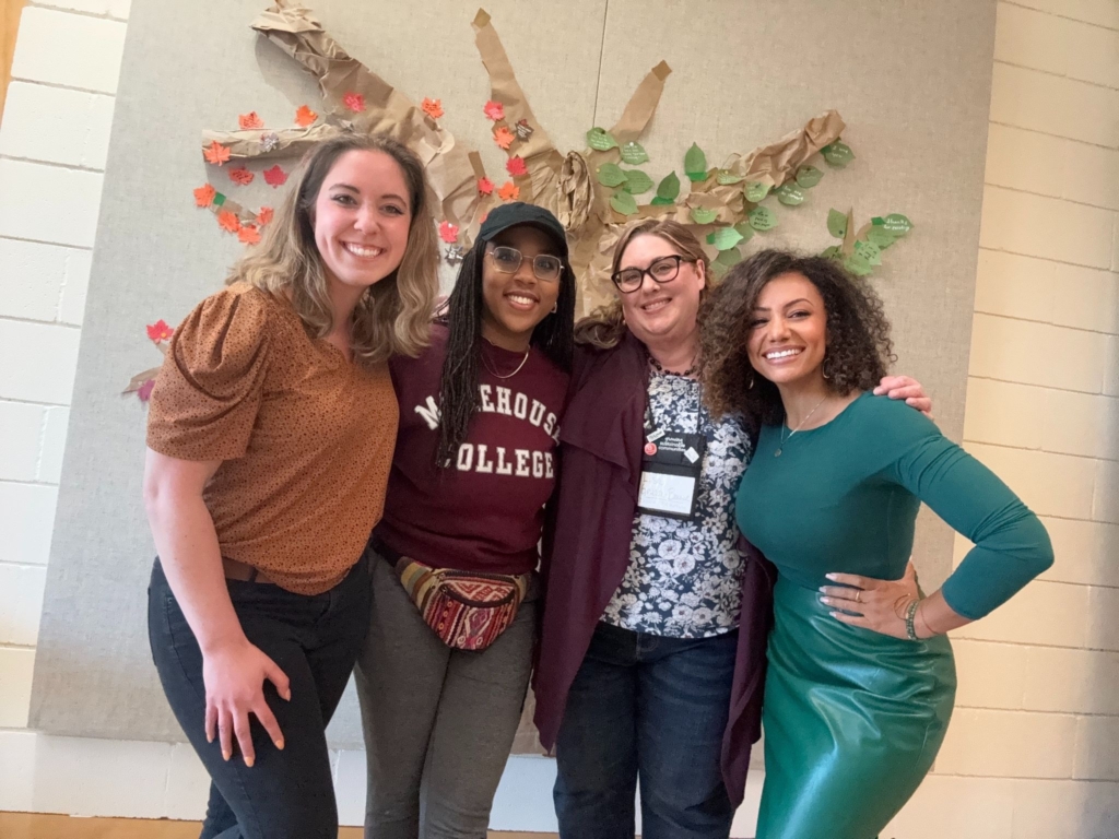 From left to right: Kim Mintrone (B Local Wisconsin Events Committee Chair), Alyssa Neff (B Local Wisconsin Marketing Committee Chair), Lisa (B Local Wisconsin Board President), August M Ball (B Local Wisconsin Liberatory Action Committee Chair) during the 2025 International Women’s Day Program